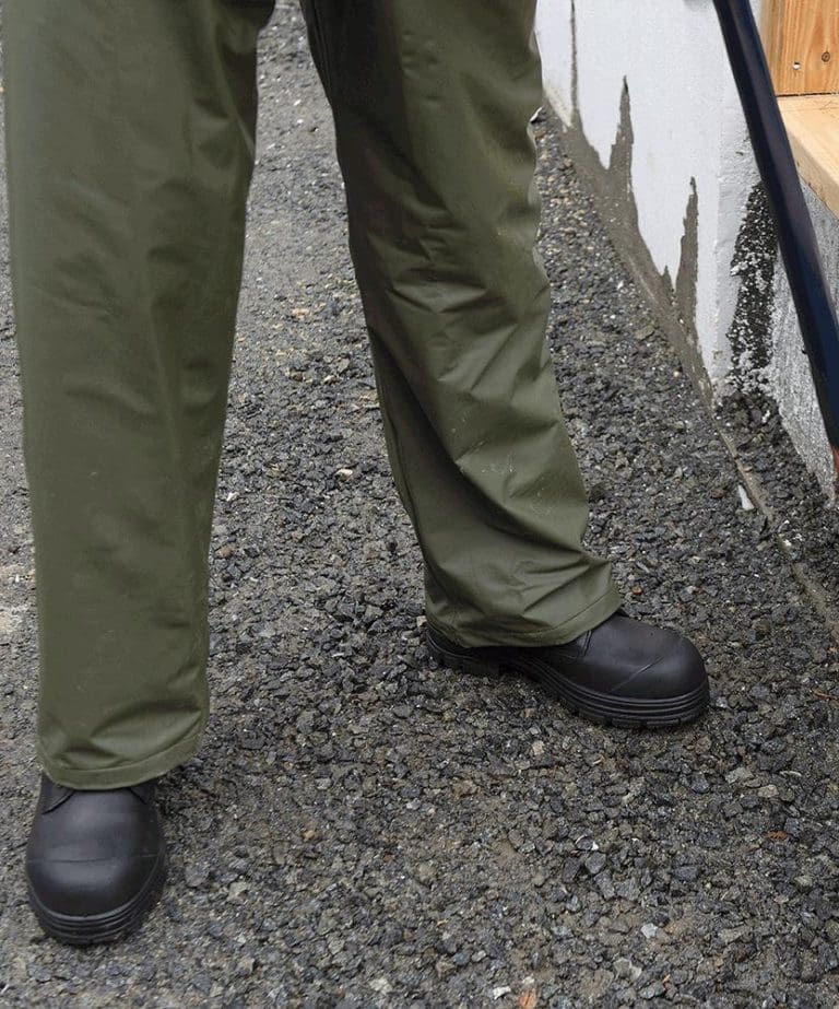 ▪ 100% waterproof polyurethane ▪ Lightweight and tough 4-way stretch fabric ▪ Polyester tricot lining wicks away body perspiration ▪ Remains flexible in cold temperatures ▪ Oil resistant ▪ Heat welded seams ▪ Heavy-duty suspenders with quick-release clips