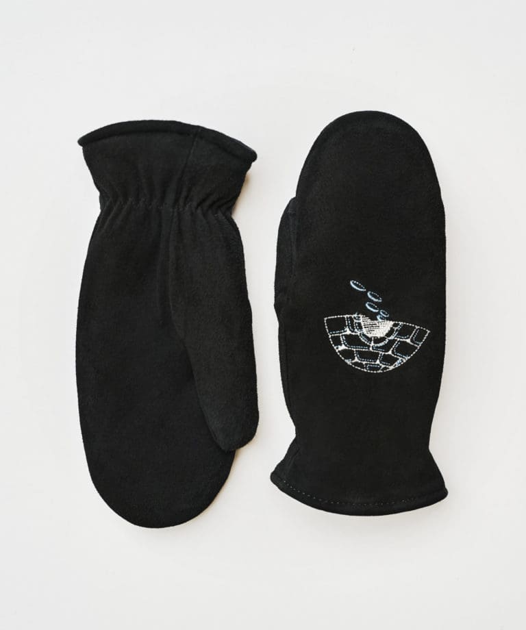 $66.00Genuine Deersuede polyester/acrylic pile lined mitt. Inseam sewn with elastic shirred wrist. With embroidered Igloo pattern on back of mitts. Colour: Black