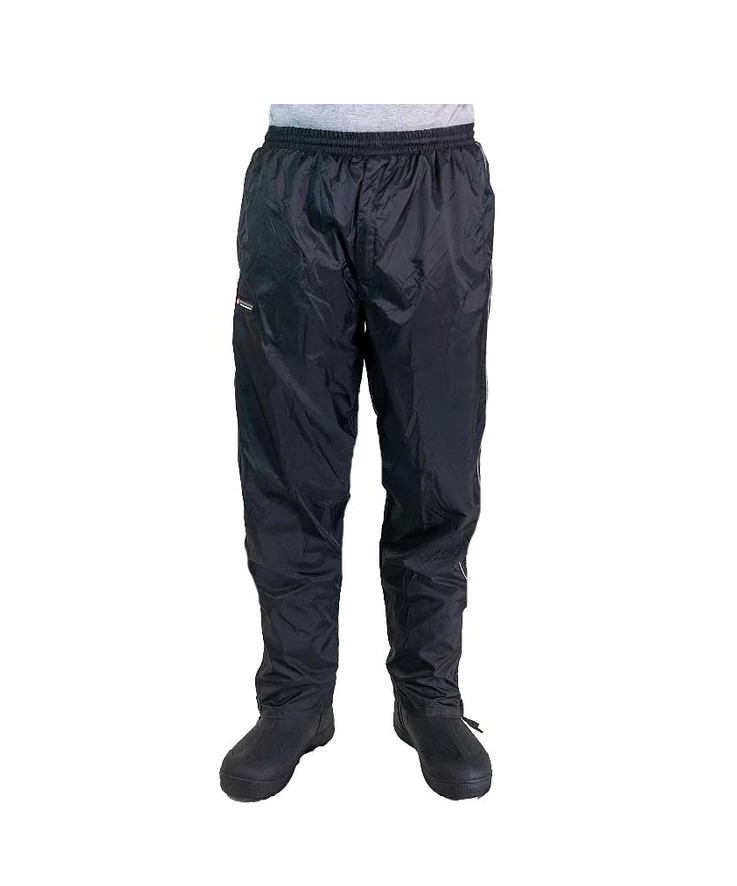 lightweight, waterproof, windproof, and breathable 2000/2000 nylon outer shell comfortable mesh inner lining dry-lock technology fully taped seams elastic waist zippered front fly 2 side pockets reflective leg stripes lightweight and compact design packs into self zippered pocket Content Shell – 100% Nylon Backing – Polyurethane Lining – 100% Polyester