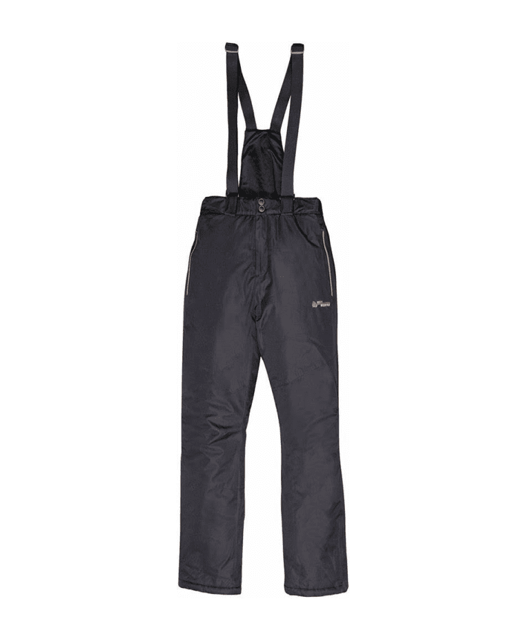 waterproof outer fabric fully taped seams 2 side pockets with zipper closure, 1 right side back pocket with zipper closure velcro straps for adjustable waist waist belt loops zipper and button front closure adjustable and removable suspenders, attached with velcro and zipper thermal inner lining side leg slit with velcro and zipper closure inner ankle…