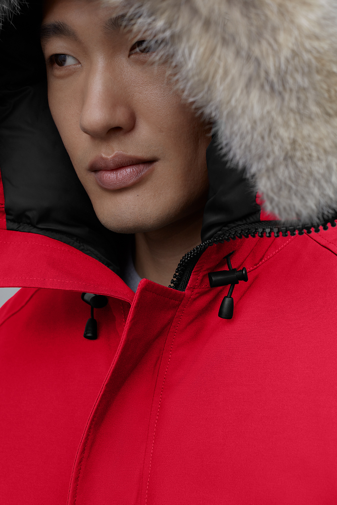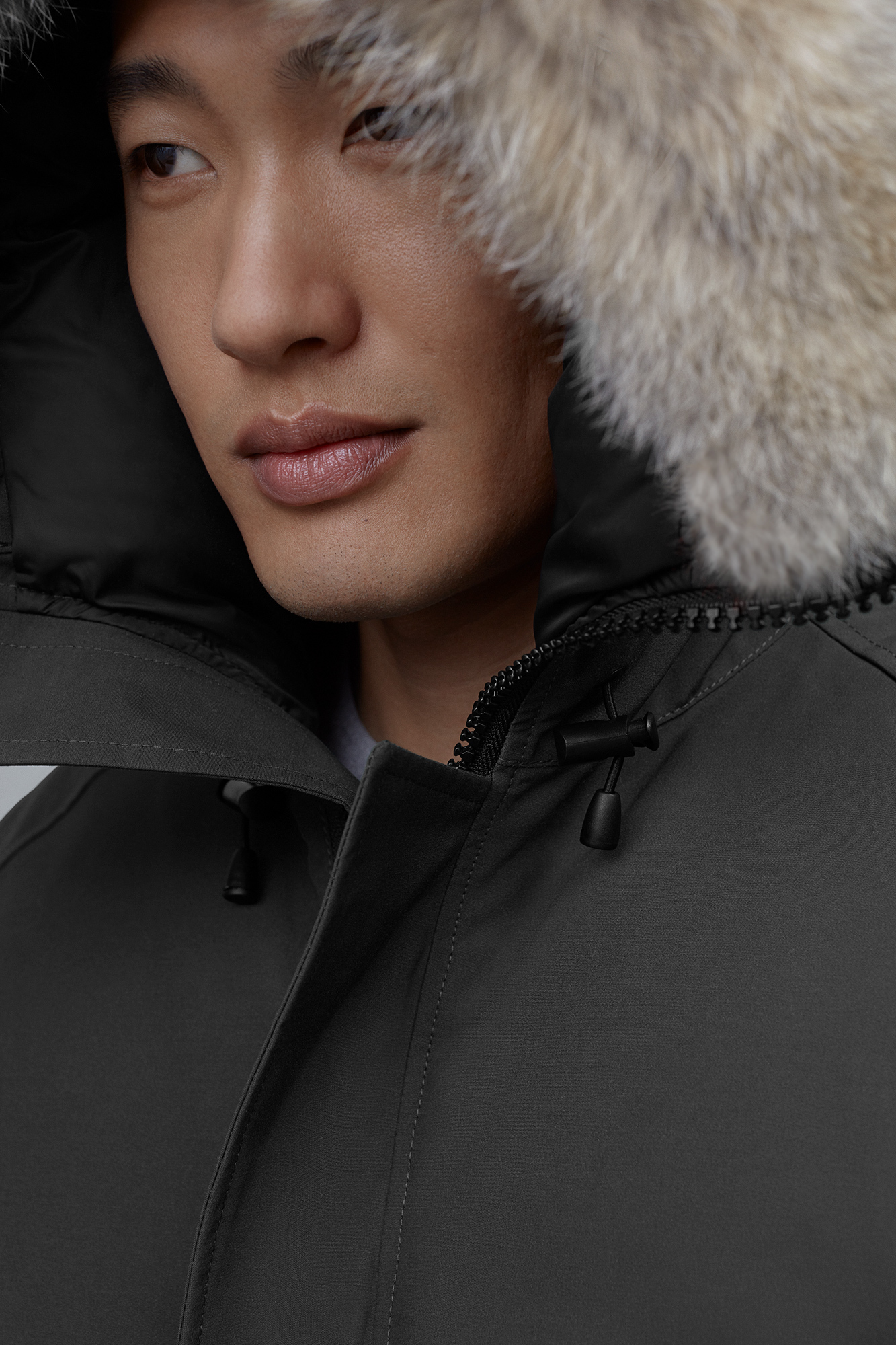 - Removable fur ruff