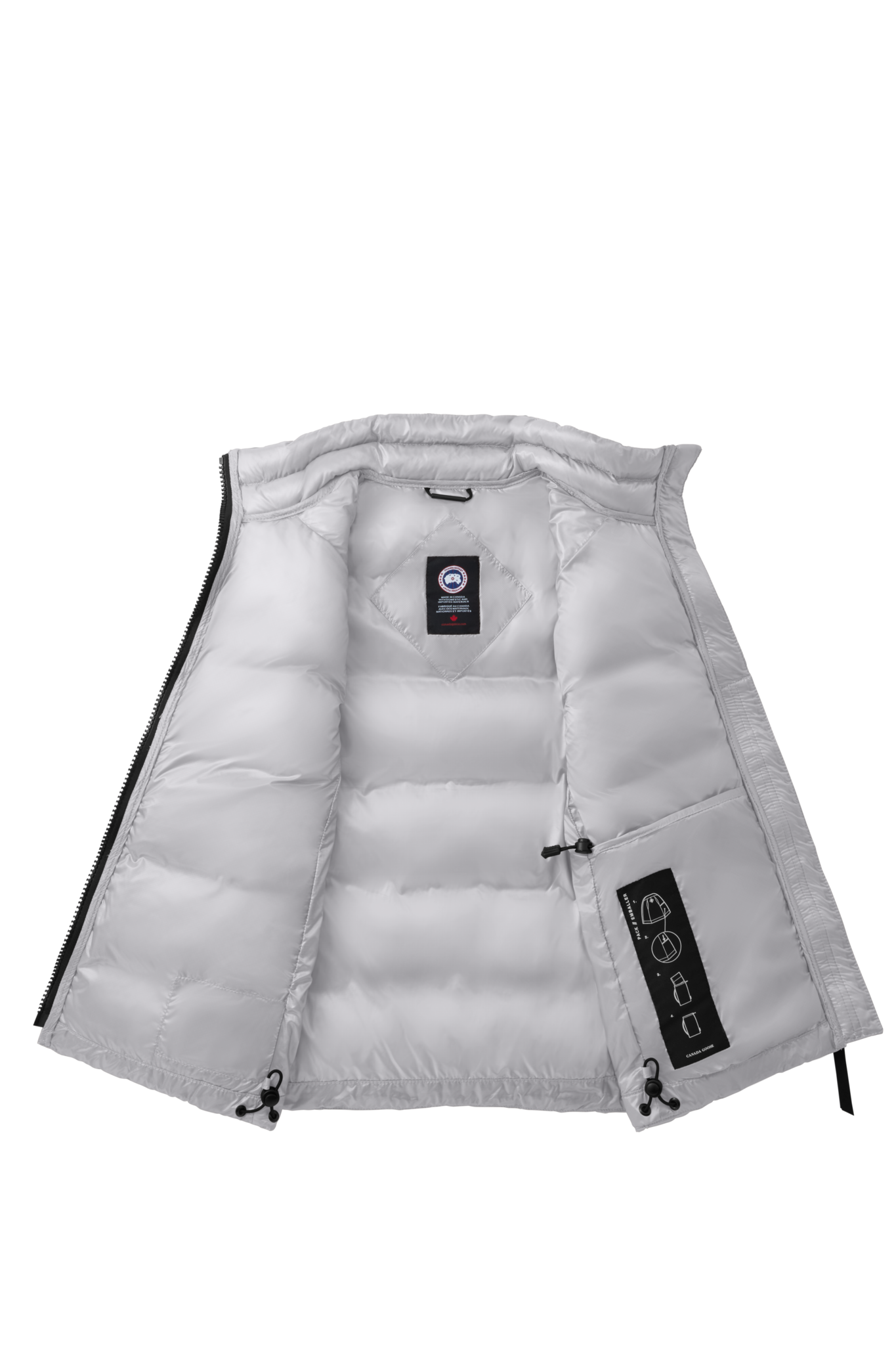 - Packable into interior left pocket. When packed, cinchable bag and pack bag strap make for easy travel and convenience