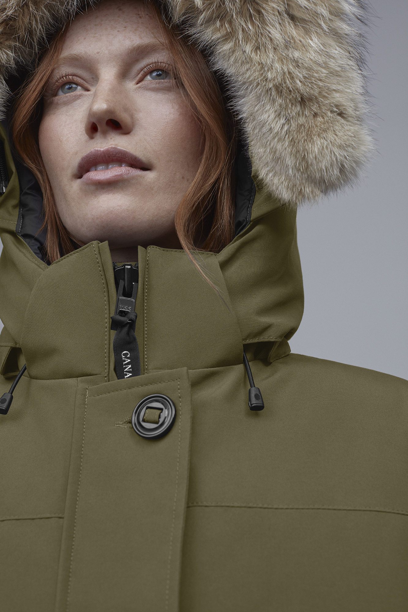 - Removable coyote fur ruff surrounding a 2-way adjustable tunnel hood (horizontally and hood opening) with an adjustable bracing wire for superior protection in high wind conditions