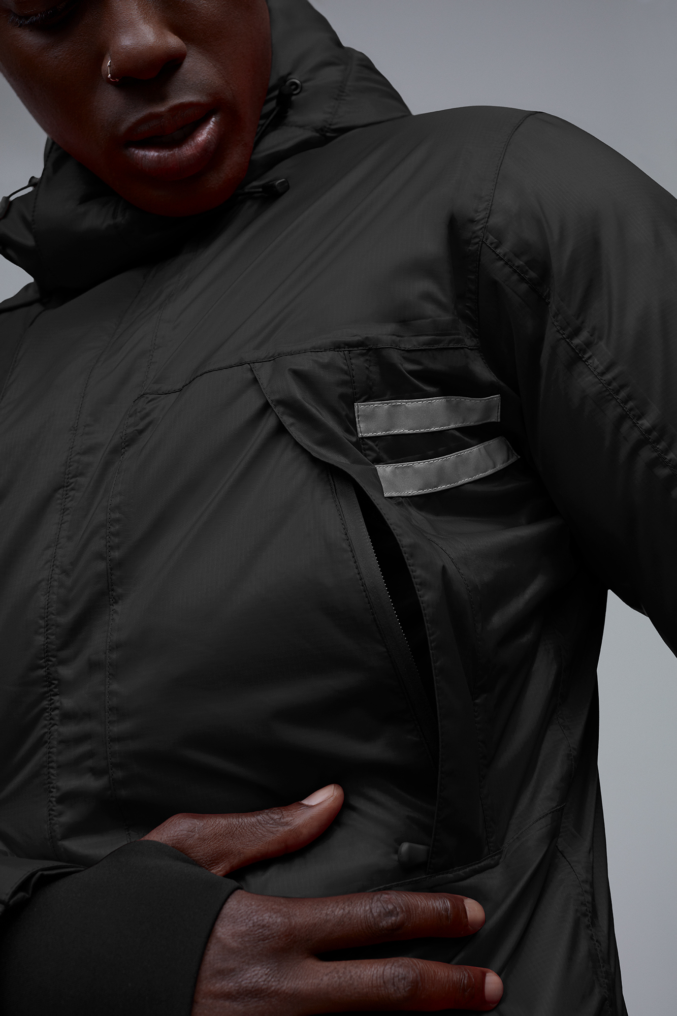 - Signature double-stripe reflective details at back of hood and upper front body add visibility in low light