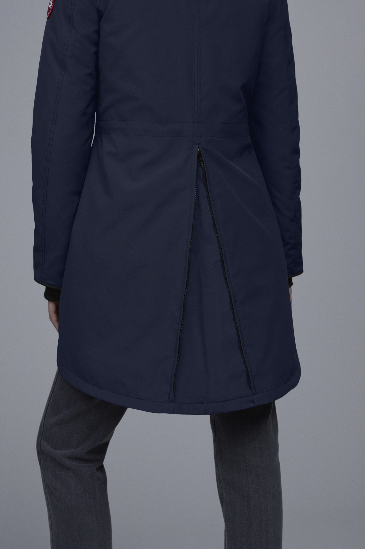 • Hem is longer in the back for added coverage. Back gusset with zipper closure opens up to adjust fit and add range of motion without compromising warmth and protection