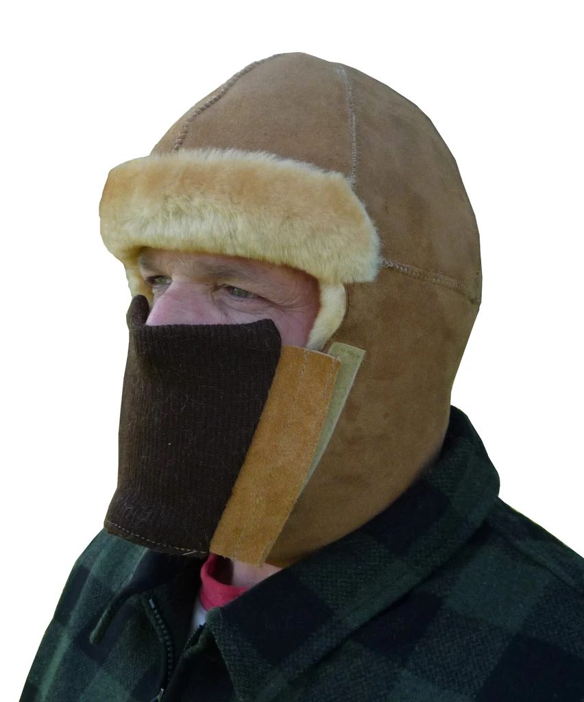 Our most popular men’s hat! Velcro closure secures flaps up or fasten under chin for versatility. Made from genuine sheepskin. Detachable face mask offers face protection against the cold.