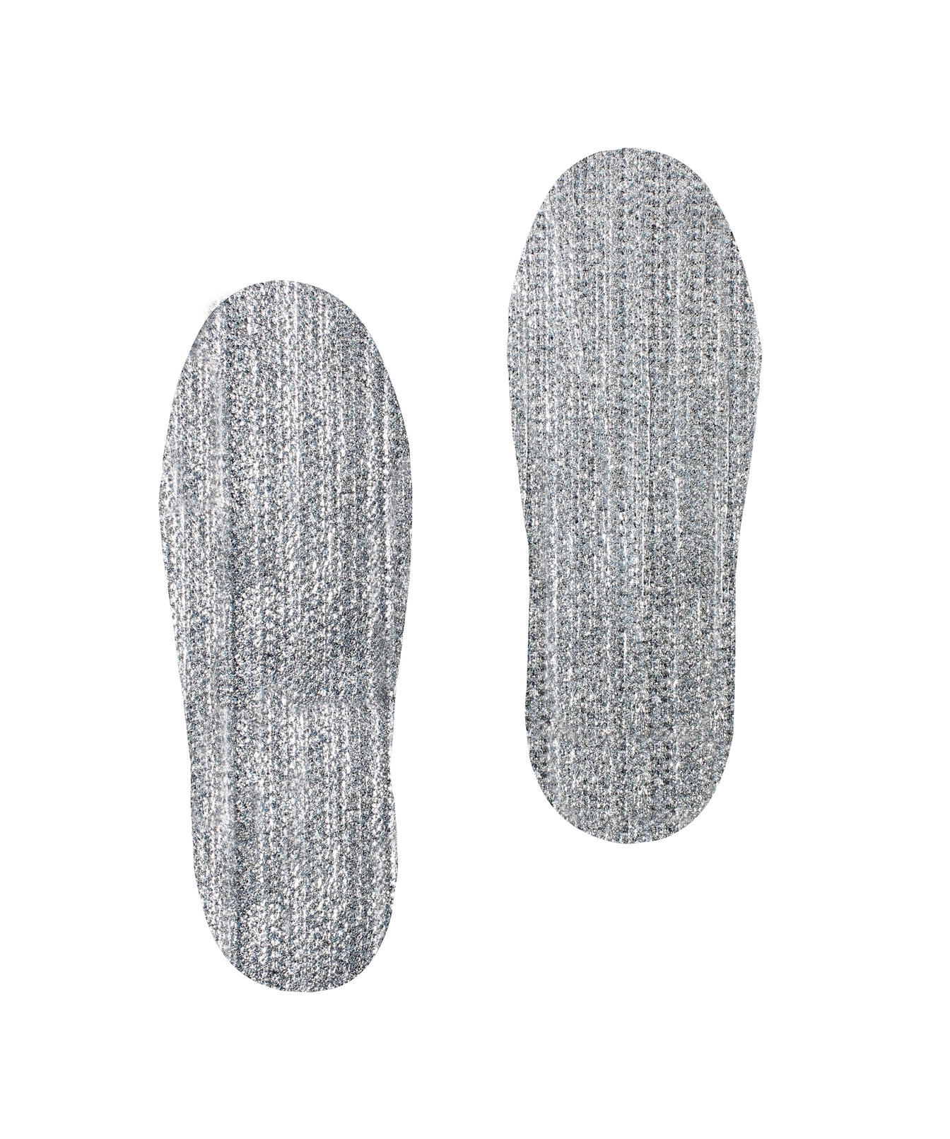 Boot insole with a warm felt top and a cold insulating aluminum layer underside.
