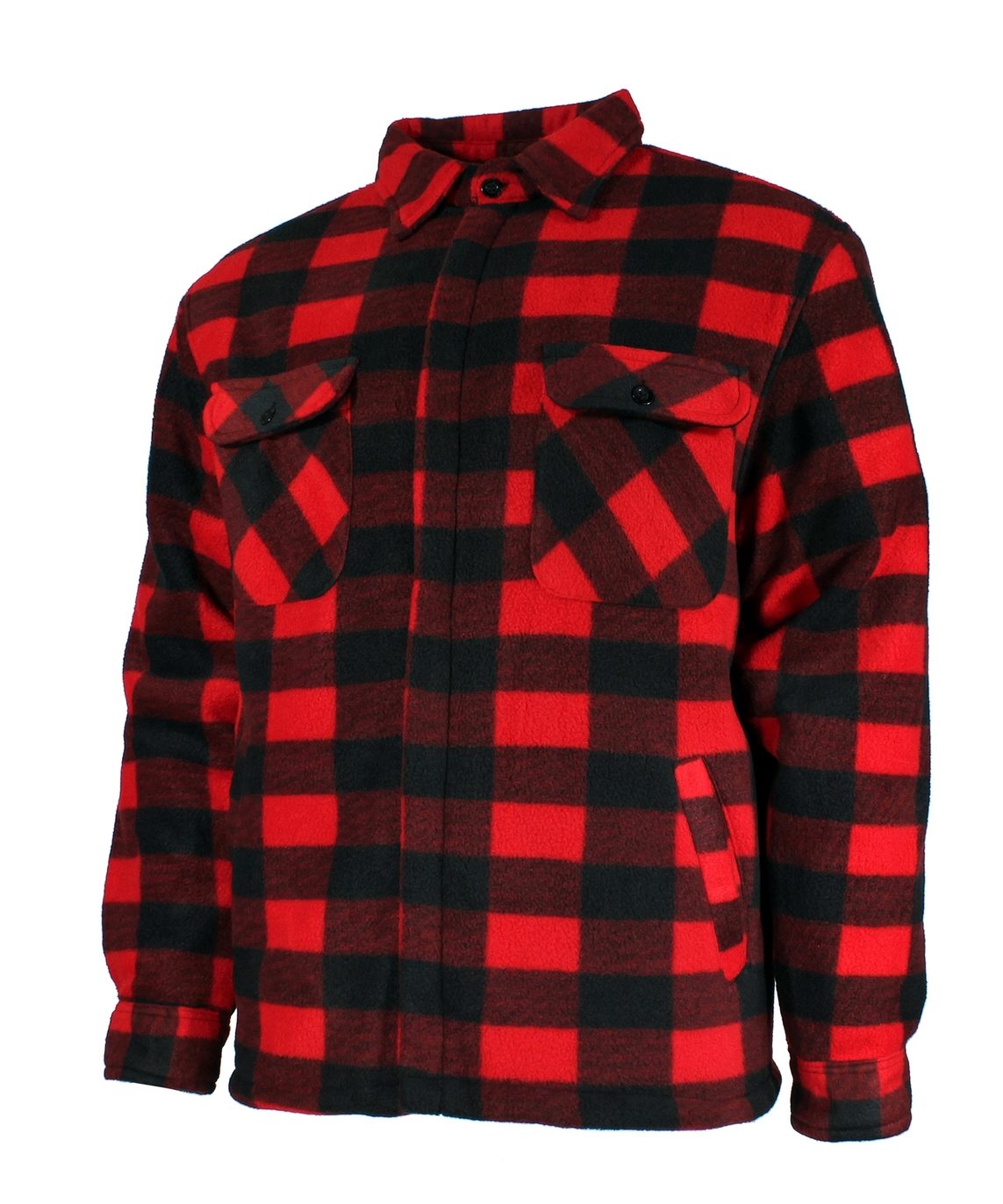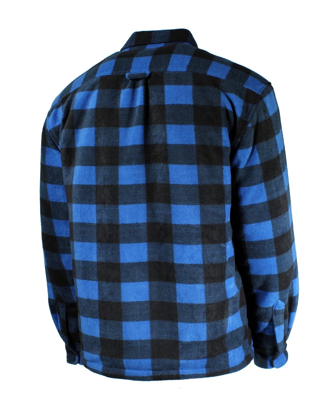 Polar fleece shirt, with a flap front zipper, synthetic sheep lining, slash pockets and flap chest pockets.