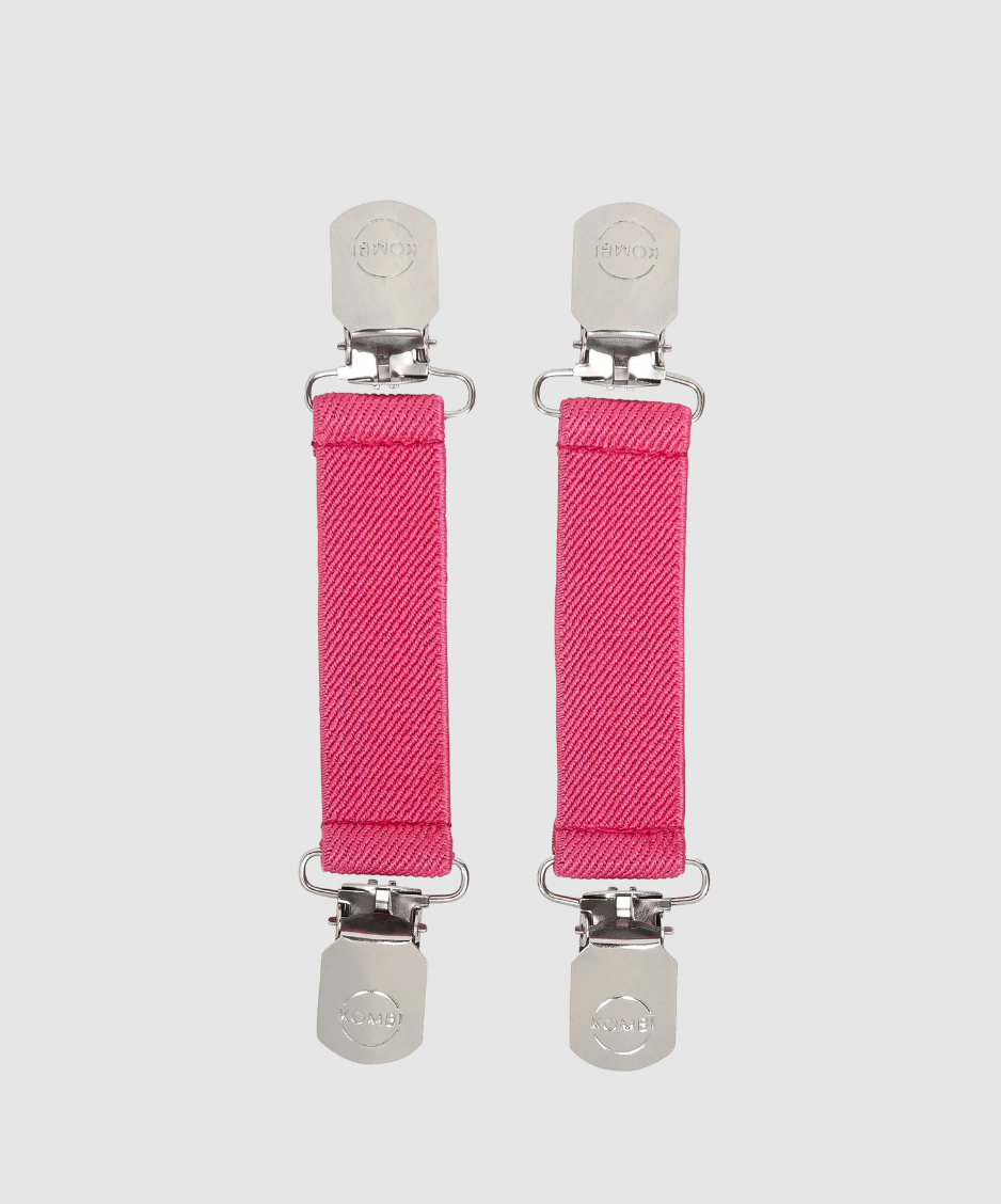 Tired of your child always removing or losing their gloves or mittens? Make sure they can always find them with these KOMBI mitten clips. Simply clip one end to the mitten or glove cuff and the other end to the jacket sleeve, and voilà! No more lost mitts this winter. These glove clips come in pretty colours to match any snow outfit and are sold in pairs.