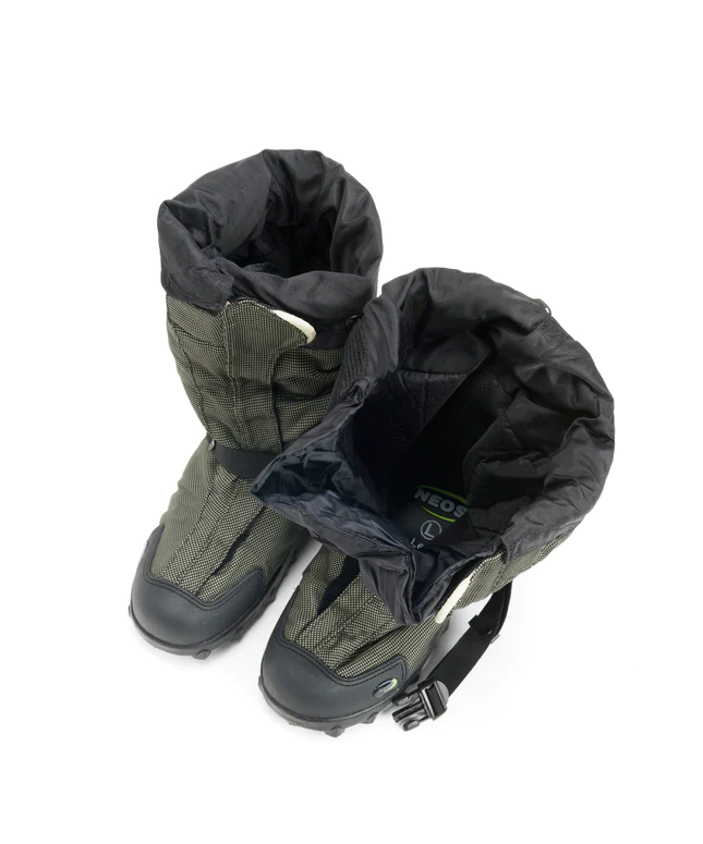 The NEOS Navigator 5 GlacierTREK is the perfect boots for winter use in cold weather with the option of removable traction for ice and snow. The outsoles with 16 replaceable cleats per pair, provides excellent traction on ice and snow. NOT to be used on hard surfaces. They come with a cleat wrench with a convenient internal pocket. They have an expandable gaiter top that can roll-out to increase boot height to 20 inches. The NEOS Navigator 5 GlacierTREK has a polyester upper and 4 mm polyurethane foam insulation which add comfort and warmth. Note: Please tighten the cleats before wearing the NEOS outdoors.
