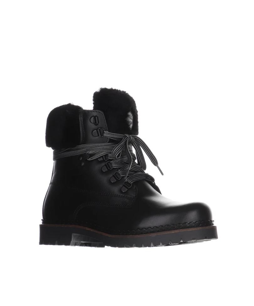 Inspired by the urban design and lifestyle of streetwear, presenting the ALISSA Pearl. This ankle high boot is as versatile as you are going to get. An amalgamation of ruggedness and protection, you’ll have everything you need out of a winter boot without compromising its urban fashion ideals. It features a shearling cuff around the shaft and lace-up closure. Patented hinged ring inserts in the boot’s outsole flip over and lock into place to reveal metal studs for additional grip on icy surfaces and packed snow. Like all our Heritage footwear collection, these come with our famous removable sheepskin insoles giving your feet the comfort they deserve.