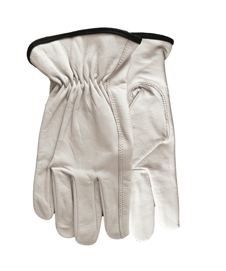 Dryhide™ water resistant full-grain goatskin leather palm is hard wearing and durable providing great dexterity Spandex stretch back is flexible and provides form-fitting memory Leather hooded fingertips and reinforced thumb for additional padding and protection Snug-fitting elastic wrist and secure Velcro® closure keeps out dirt and debris