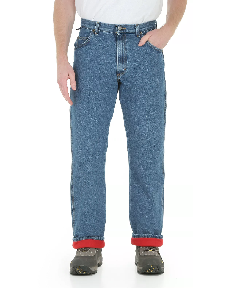 RUGGED WEAR THERMAL JEANS…THE RIGHT MIX OF WARM AND RUGGED Wrangler Rugged Wear thermal jeans feature an oversized fit for comfort and easy entry. The quilted Thinsulate® lining lets you brave cold weather conditions in comfort. FABRIC : 100% Cotton, 13.75 oz. Denim, Quilted Lining