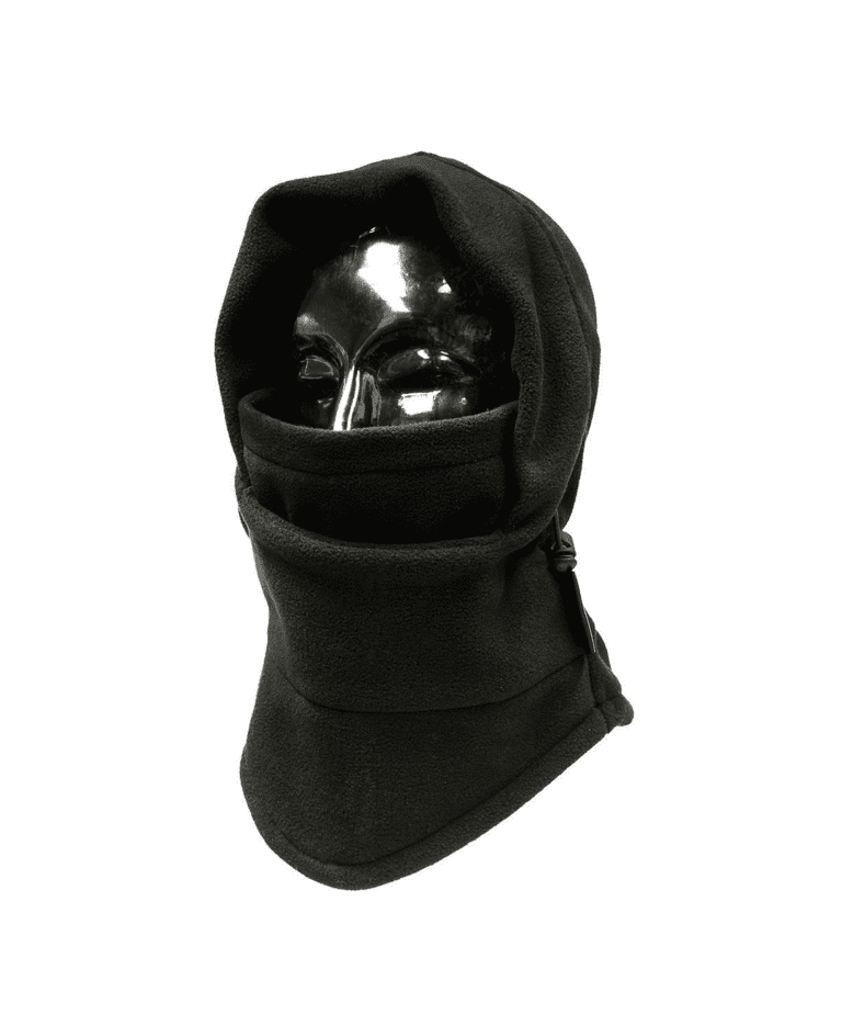 thermal warm polyester fleece fabric engineered thermal technology double fleece lining extra thick construction fold away nose and mouth flap adjustable drawstring and toggle slides to draw hood tighter and minimize gaps