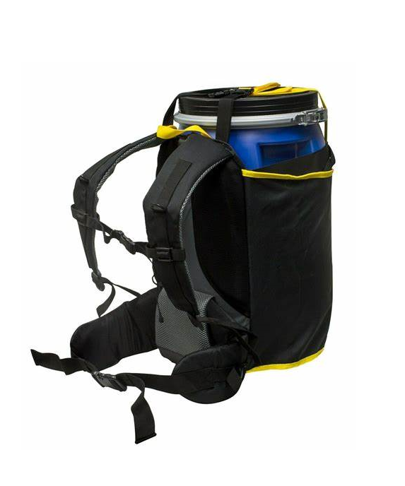 600 denier polyester fabric padded hip belt and shoulder straps grab handles for easy lifting out of boat and vehicle mesh water bottle front pockets side stabilizer straps padded lumbar and back pad sternum strap helps to effectively hang food while backcountry camping fits World Famous North 49 Dry Ride Barrel * Barrel NOT INCLUDED