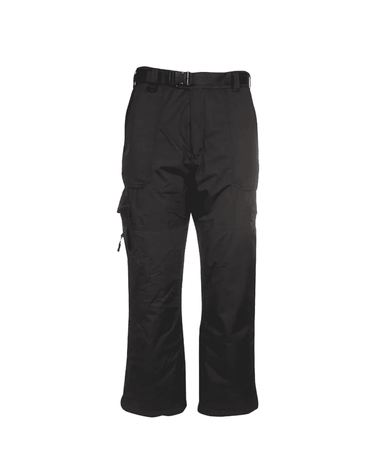 100% waterproof Ripstop Polytek outer fabric Dry-Lock tec fully taped seams light fleece lined zipper/button/velcro front closure adjustable waist belt with buckle closure lower leg side split with zipper closure elastic inner ankle snow cuff with side split and velcro/button closure 2 side pockets with zipper closure, 2 back pockets with flap and velcro closure…