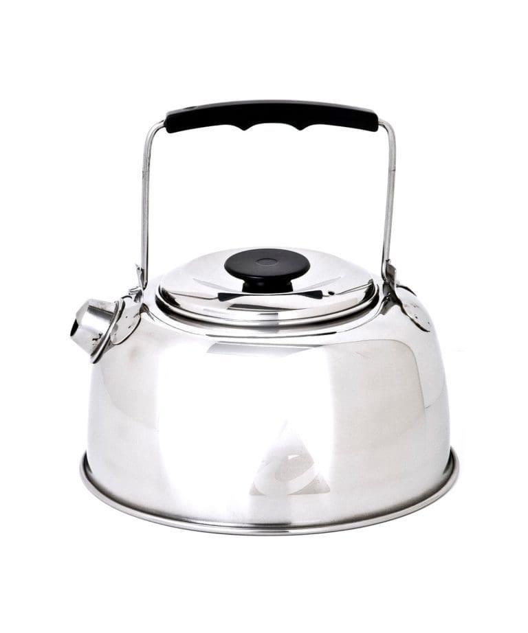 Made from heavy gauge, 18/8 polished stainless steel and folding handles, these tea kettles make great tea at camp and at home. Designed to nest inside most Chinook cookware. Dishwasher-safe. Each kettle includes a quality storage sack with a drawcord closure. It comes with an easy-to-clean stainless steel mesh basket for making herbal or leaf…