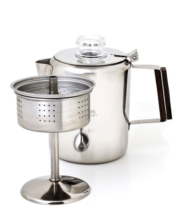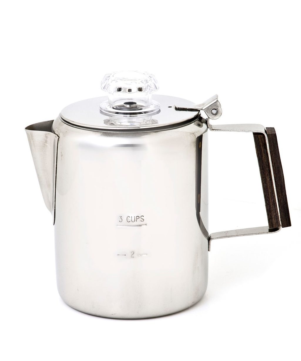 The Timberline Coffee Percolator with its heavy gauge 18/8 polished stainless steel construction and heat insulating Permawood handle makes perfect coffee at picnics, camp and home. This percolator has precision-fitting, seamless parts for brewing great coffee for years to come. Dishwasher-safe. Includes a quality storage sack with a drawcord closure. Capacity Weight 6 Cup…